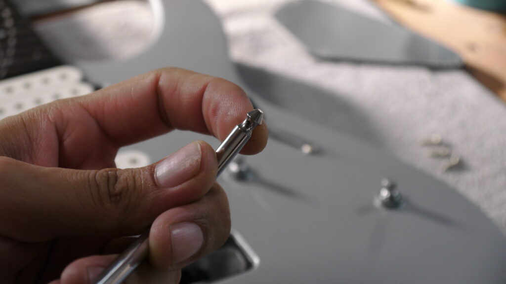 こちらには時々、木材のカスや埃などの異物が入り込んでしまうことがあります。そうした汚れが挟まると、ネックとボディの密着が悪くなり、サウンドや演奏性に影響が出る可能性があります。