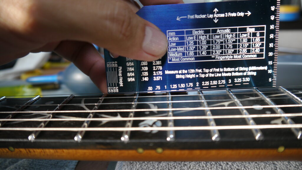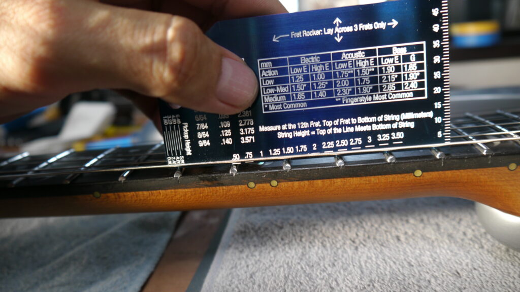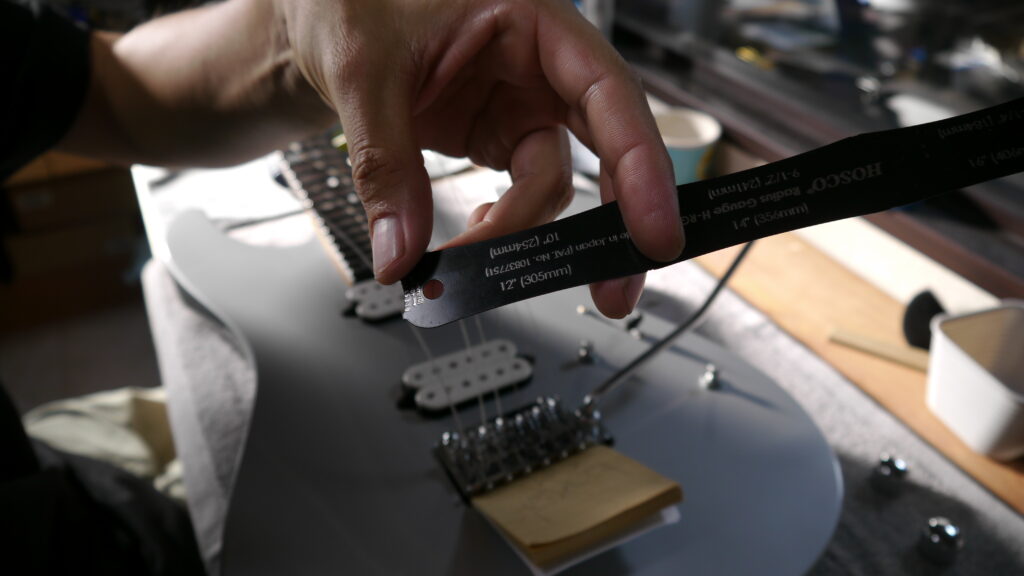 ギターのラディアスを調べ、それに合わせて調整を行います。指板の曲面に最適な状態に整えることで、全ポジションでの演奏性が向上します📏✨