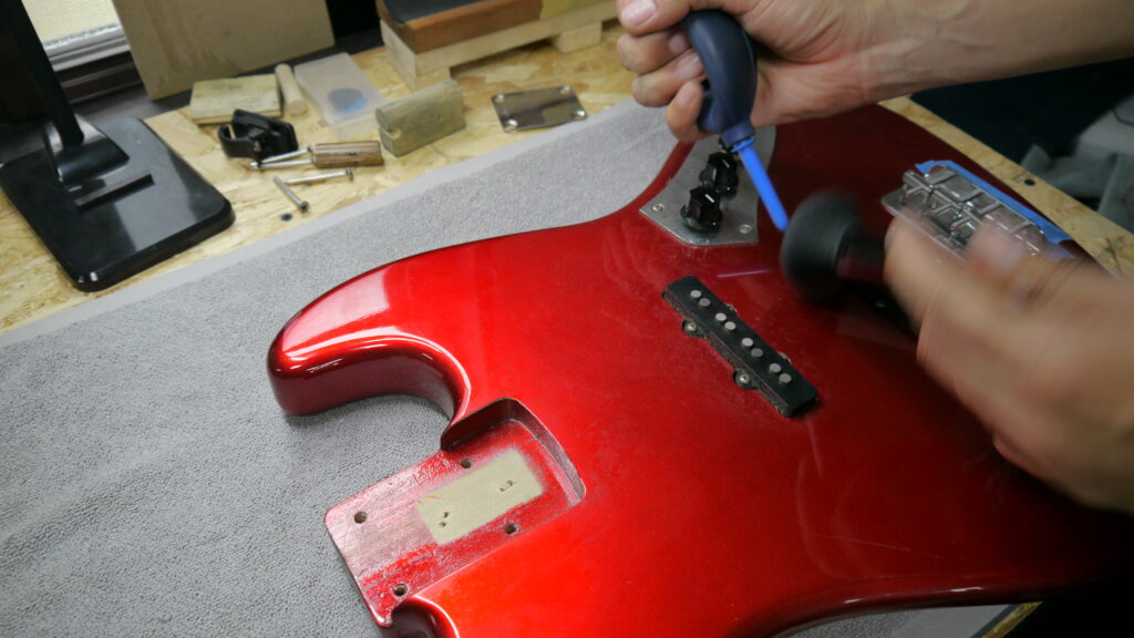 TOKAI JAZZ BASSのオーナー様より、「トータルセットアップ」とのご相談でお預かりしました。