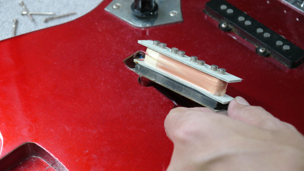 ピックアップ部分です。問題なく調整が行えるかどうかを丁寧に確認するとともに、マウント周りやキャビティ内の掃除も進めてまいります🧼✨