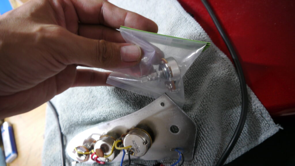 続いては電装パーツ等の確認をしていきます。埃をキレイにしてからピックアップやポット、ジャックの状態を一つひとつ丁寧にチェックしてまいります🧼✨