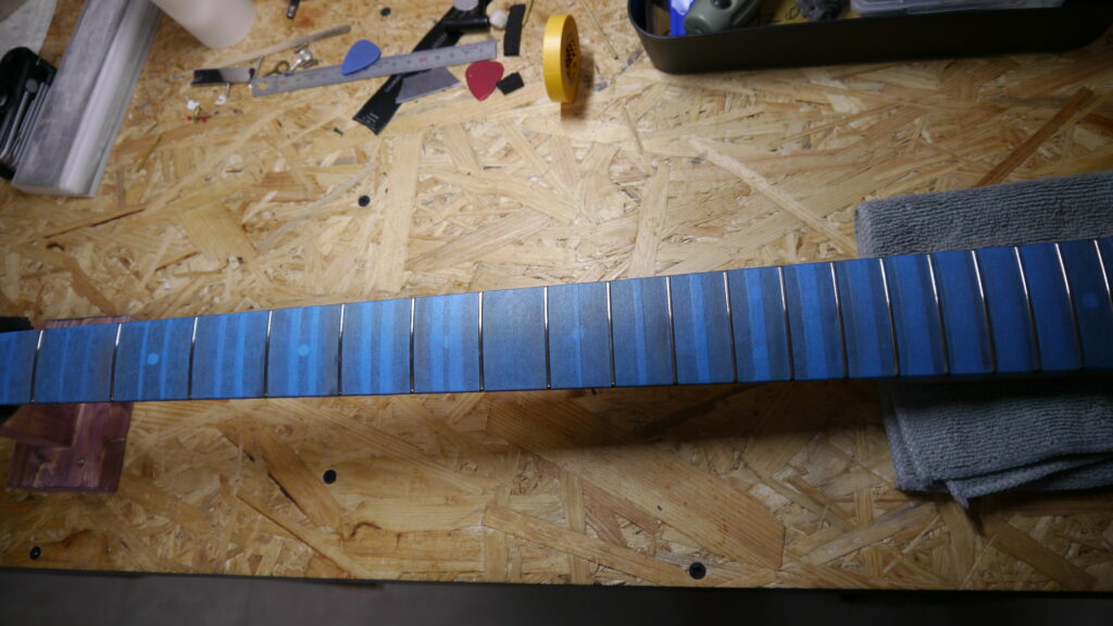 フレットポリッシュ、ラディアスに合わせた弦高・オクターブ・ピックアップの精密調整